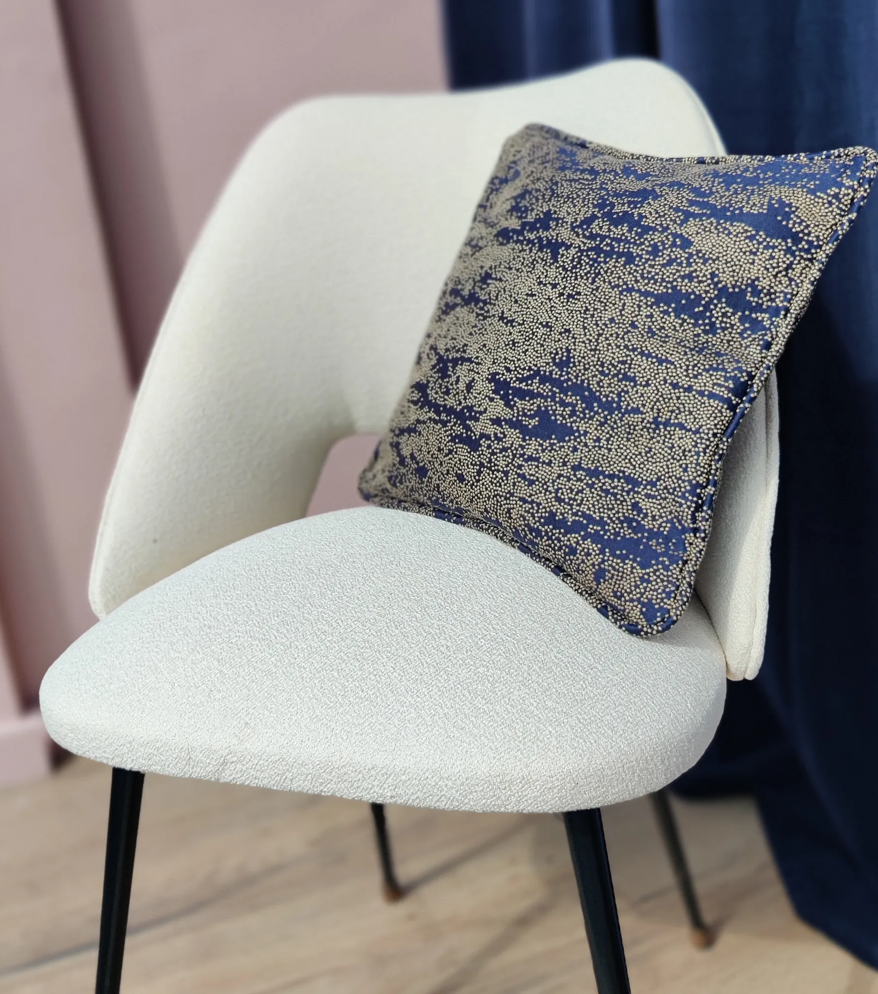 Coussin "Spuma" 50 € (+ frais de livraison hors Finistère) Tissu Jacquard de chez métaphores Paris, rappelle l'écume de la mer. 30x30cm 42% COTON / 22% LIN / 36% VISCOSE Acheter
