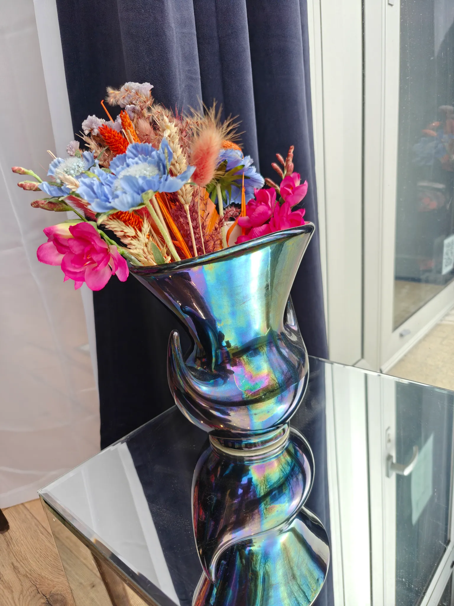 Vase à anses cornes 50 € + 10,00 € de frais de livraison (hors Finistère) Joli vase à anses cornes, vintage, reflets irisés. Acheter