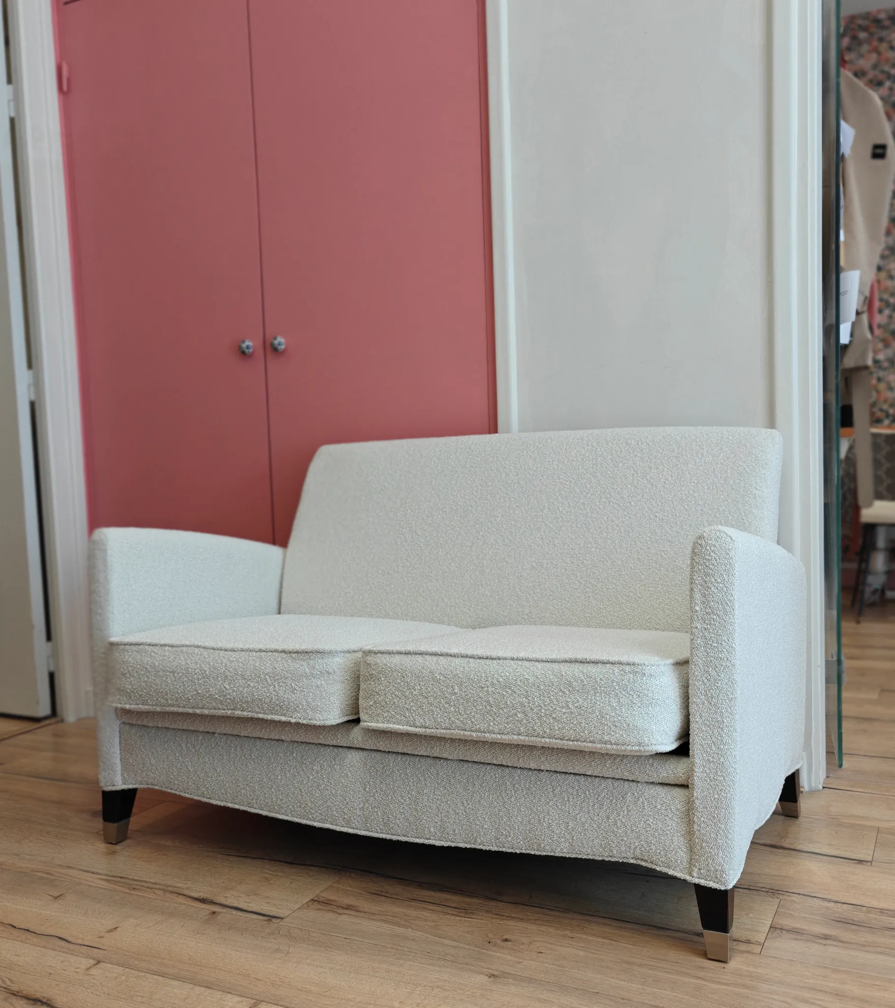 Photo entièreCabriolet Louis XVI recouvert d'un velours de chez Romo et d'une cordelière de chez Plume&laine .